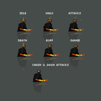 - Animations: Idle, Move, Attack(s), Buff, Range Attack, Spear, Chain Attack, & Death